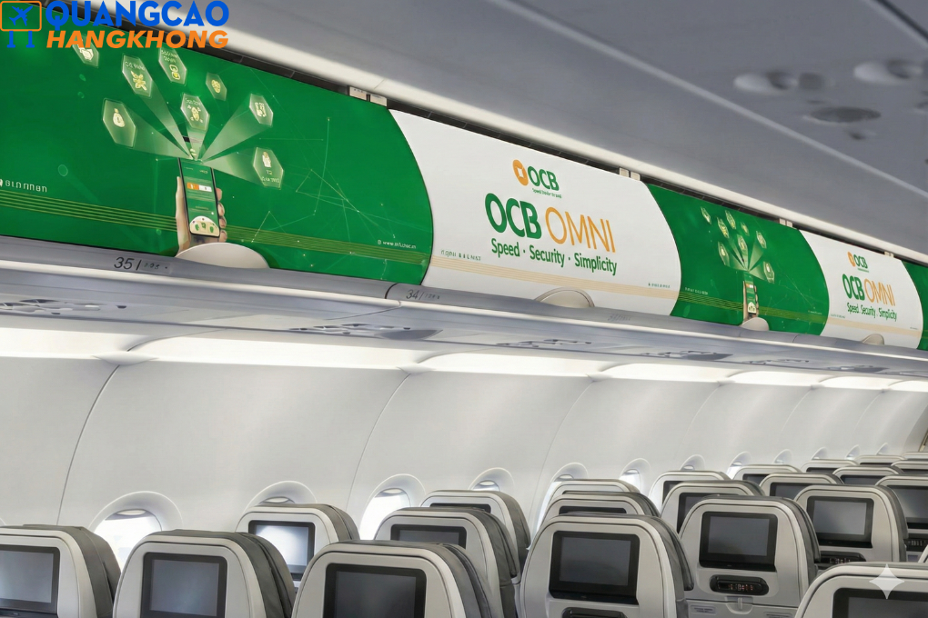 Hộc hành lý là khu vực có tầm nhìn rộng trong khoang cabin và dễ thu hút sự chú ý khi hành khách cất hoặc lấy đồ. Quảng cáo tại vị trí này tạo hiệu ứng trực quan mạnh, tiếp cận gần như toàn bộ hành khách trên chuyến bay. Nhờ khả năng xuất hiện ở “góc nhìn chung” của khoang, thông điệp thương hiệu có cơ hội được ghi nhớ tốt hơn.